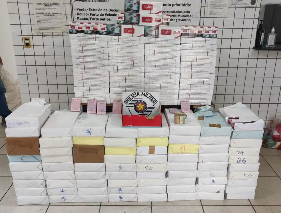 A Polícia Militar prendeu um homem, de 49 anos, e duas mulheres, de 29 e 53, com milhares de maços de cigarros contrabandeados em Tatuí (SP). Um adolescente, que estava com o trio, foi detido. O flagrante aconteceu na tarde desta sexta-feira (2).