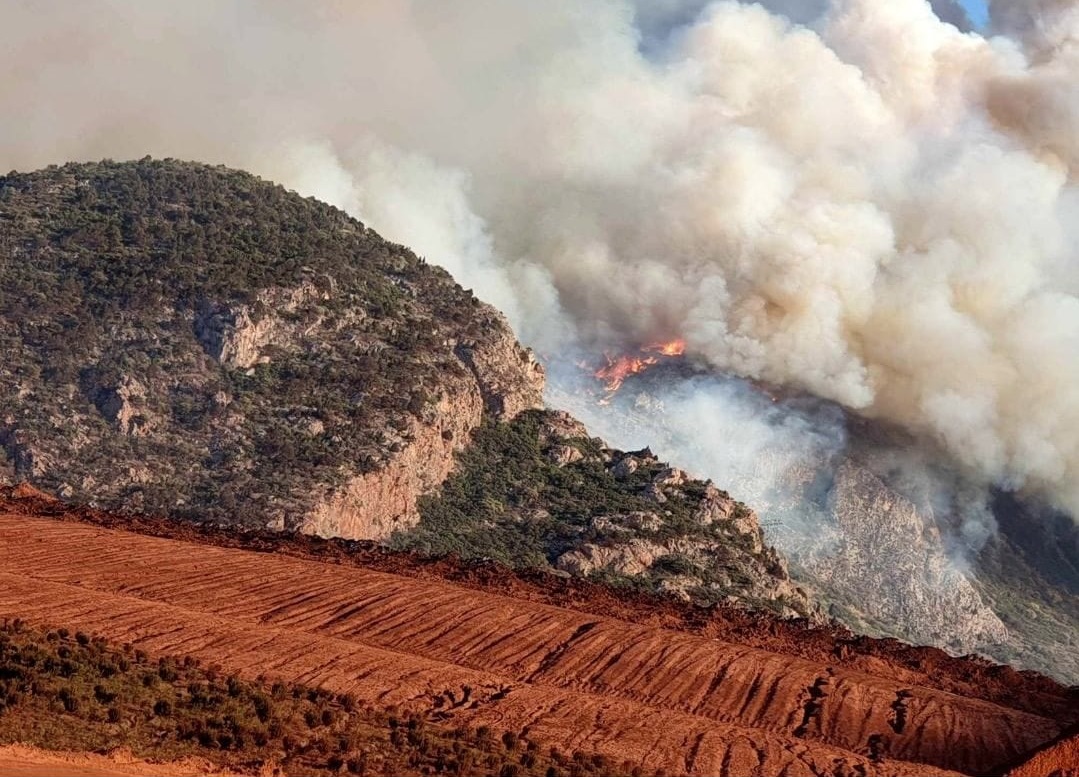 Um agricultor corre para salvar os seus animais do incêndio florestal