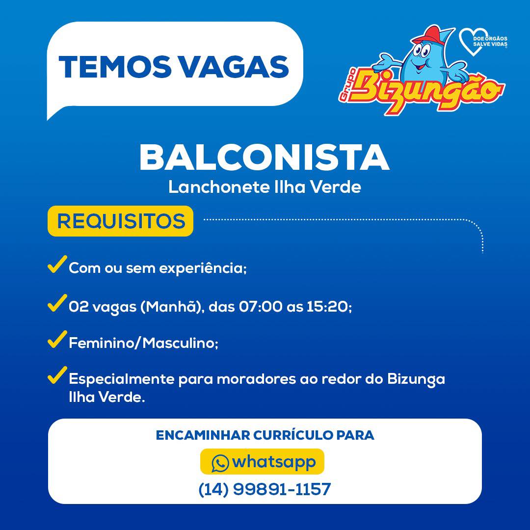 Celebridades Vaga de emprego para Balconista 23 de novembro de 2023 Paulista FM SP ATENÇÃO, TEMOS VAGAS DE EMPREGO Cargo: Balconista Lanchonete Ilha Verde Confira nossos requisitos, encaminhemo-nos seu currículo e venha fazer parte do Grupo Bizungão! Compartilhe isso:PublicarCurtir isso:Curtir Carregando...